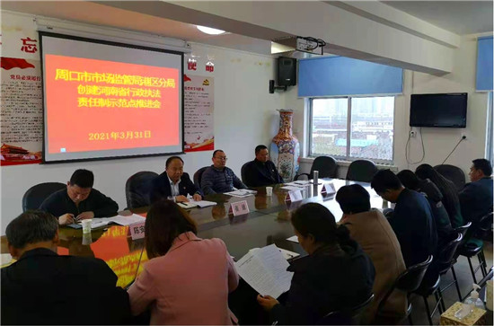 为贯彻落实行政执法责任制,深入开展河南省行政执法责任制示范点工作,3月31日,周口市市场监管局港区分局召开创建河南省行政执法责任制示范点推进会,港区分局全体干部职工参加会议。