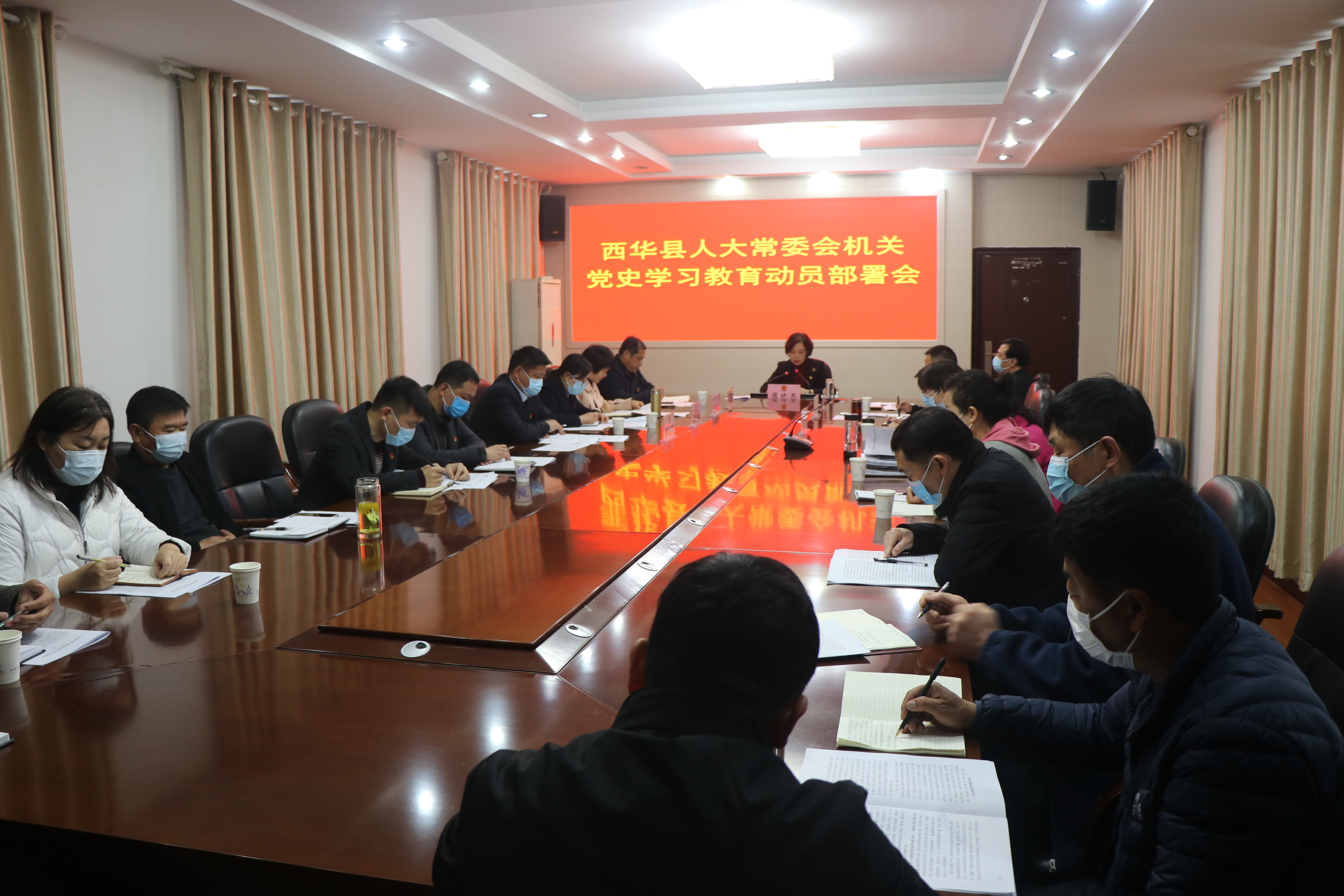 4月2日,西华县人大常委会机关召开党史学习教育动员部署会议,研究部署县人大常委会机关党史学习教育工作。县人大常委会党组书记、主任周晓燕出席会议并讲话,县人大常委会副主任赵晓春,党组成员、副主任庞有敬出席会议,机关全体党员干部参加会议。