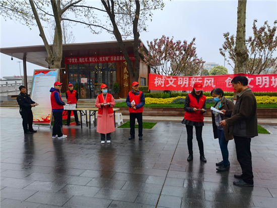 为积极创建全国文明城市,擦亮周口“城市文明之窗”,4月2日上午,市城市管理执法支队在五一广场“市民驿站”前开展“树文明新风、创文明城市”宣传活动。