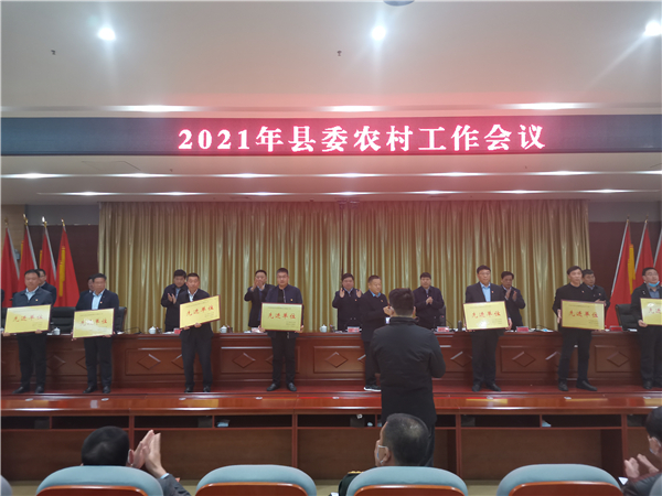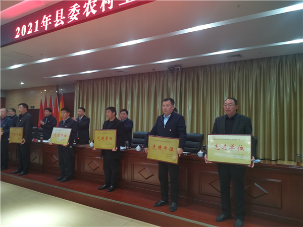 郭俊涛就贯彻落实会议精神及下一步农村工作进行具体安排部署。县委副书记许四军宣读了县委、县政府关于表扬2020年度农业农村工作先进单位、先进个人的通报。会议还对受表彰的先进单位代表进行了颁奖。
