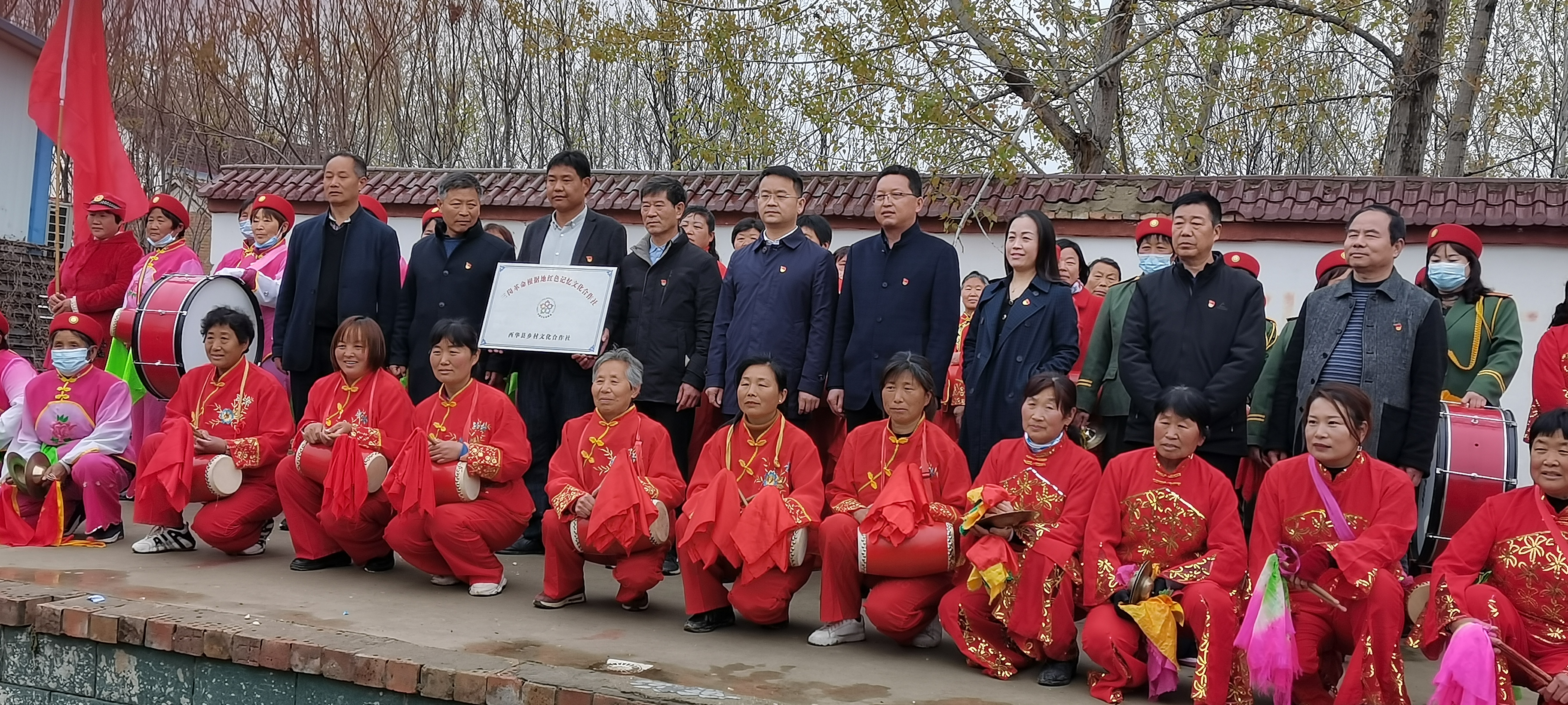 腰鼓声声 、扇舞翩翩、 大戏铿锵。4月2日上午,“豫东特委”驻地的西华县艾岗乡“三岗老区”的文艺队员们欢呼跳跃,载歌载舞,迎接三岗革命根据地红色记忆文化合作社的揭牌仪式,欢迎这个新时代乡村文化发展模式的到来。