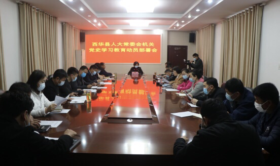 4月2日,西华县人大常委会机关召开党史学习教育动员部署会议。县人大常委会党组书记、主任周晓燕出席会议并讲话,副主任赵晓春、庞有敬和机关全体党员干部参加会议。