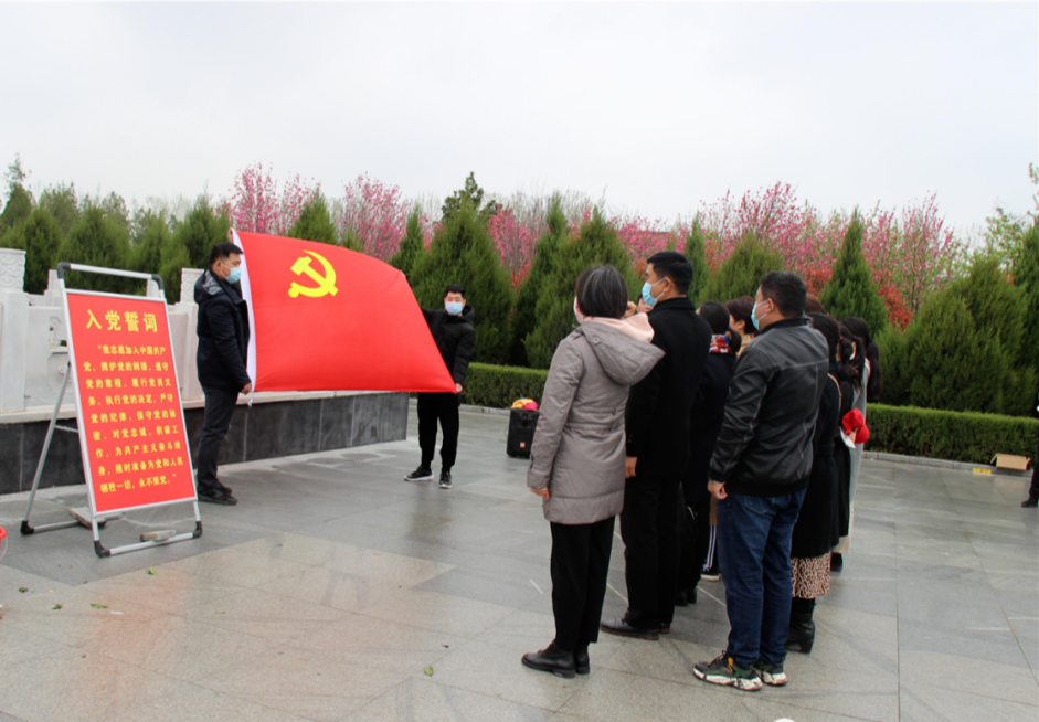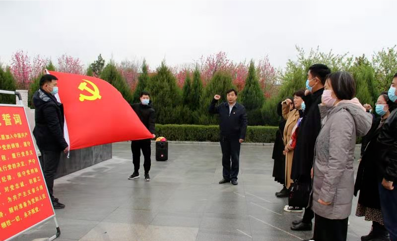 面对党旗重温入党誓。随后,大家有序为安葬在陵园的英雄烈士擦拭墓碑、清理杂草。 大家纷纷表示,一定铭记历史,珍惜现在的美好生活,以英雄为榜样,认真工作,以优异成绩庆祝建党100周年。