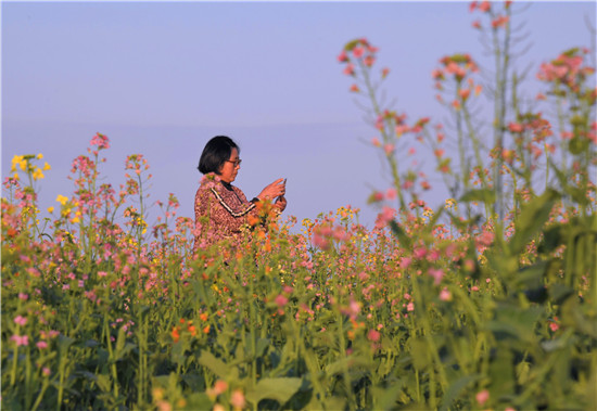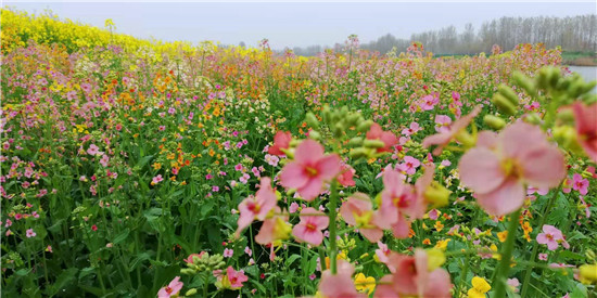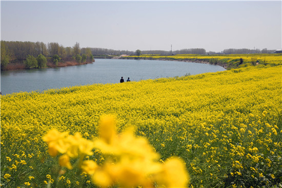商水县在母亲河——沙颍河南岸种植1万多亩黄色、粉色、紫色等多色油菜花,积极打造水清、岸绿、景美的自然观光带,吸引许多周边县市的群众前来踏青赏花游玩,邓城油菜花海被游客誉为周口的“小婺源”,成为乡村振兴图景中的一道亮丽风景线。