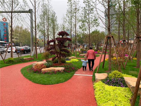 “风景真是太美了,咱们坐这儿歇会吧。”4月7日一大早,园里就热闹起来,有蹒跚学步的孩童,有锻炼身体的中年人,也有互相搀扶依偎的老人。自打游园开放后,市民李大妈成了这儿的常客,“瞅空就带着小孙子来这儿玩。”绿化带一夜间“变身”,让过往市民赞叹不已,大家的幸福感、获得感进一步增强。