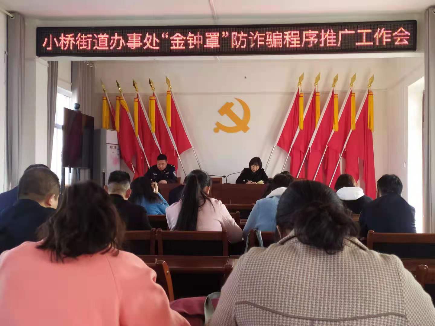 坚持党建引领,高起点安排部署。办事处坚持以党建统领为中心,第一时间成立了防范诈骗宣传工作领导小组,立即召开了全办推广“金钟罩”程序专题会,安排部署宣传推广工作。同时,每周召开“金钟罩”放诈骗程序推广小结会,对各社区推广注册人数情况进行日督查周统计通报,对落后社区进行通报批评。坚持四级联动,高规格落实责任。办事处将下辖9个社区根据实际情况划分为30个网格,形成了“科级干部—派出所民警—社区干部—志愿者服务队”四位一体的小桥办“金钟罩”防诈骗推广小组,由综治中心牵头搭线,各社区干部、党员志愿者和辖区派出所民警结成宣传对子,挨家挨户上门宣传,夯实责任,主动出击,形成合力,成效明显。
