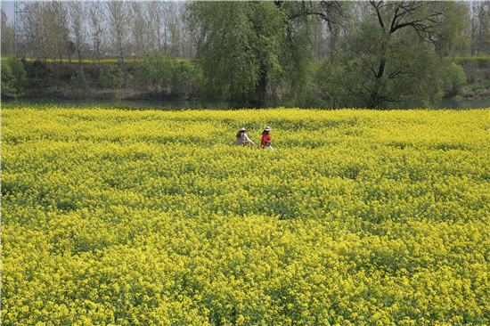 去年以来,商水县为落实市委、市政府打造沙颍河流域水上游览项目要求,深度挖掘沙河沿线厚重文化底蕴与生态观光资源,在邓城、张庄等乡镇的沙河岸边,连片种植6000多亩多彩油菜花,打造周口近郊休闲旅游圈,助推乡村旅游业快速发展。目前,连片种植的油菜花开始怒放,大地一片金黄,随着河滩地势的高低起伏,像金色的波浪一样荡漾在天地之间,吸引了大批游客前来观赏。