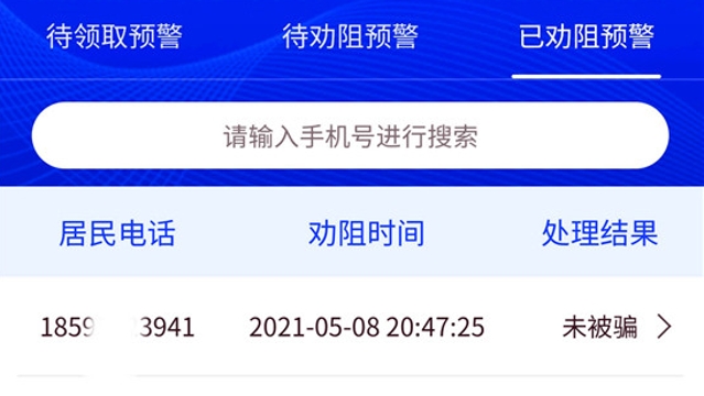 5月8日,郸城县公安局南关派出所社区民警收到“金钟罩”推送的反诈预警信息,辖区居民郭某有受骗风险,社区民警第一时间联系郭某核实了解相关情况并及时予以制止。