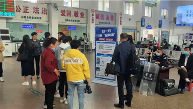 近日,川汇区交通运输局在中心汽车站、北环运政服务大厅等流动量大、人员密集场所,开展扫一扫注册“金钟罩”“防范诈骗你我同行”主题推广宣传活动