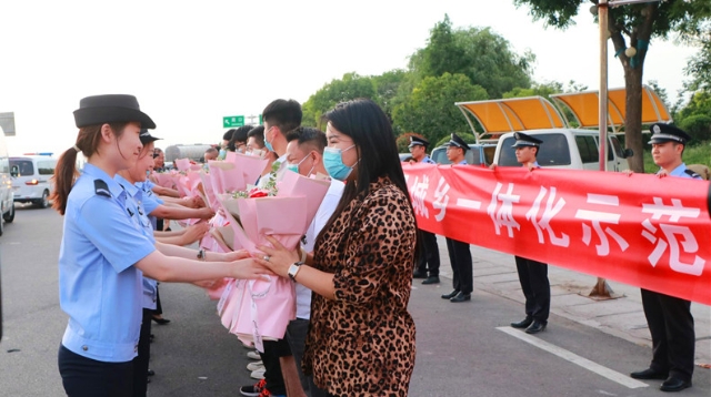 5月29日,周口市公安局城乡一体化示范区分局在大广高速周口东出站口举行仪式,热烈欢迎辗转万里侦破电信诈骗的专案组民警凯旋,经过专案组多日昼夜奋战,11名涉案犯罪嫌疑人被成功押解回周口。