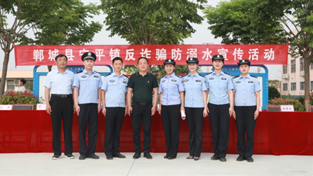 近日,郸城县公安局女子反诈宣传队负责人王冰等与县公安局反诈中心民警一起,来到宁平一中,开展反诈骗、防溺水宣传。宁平镇镇长王树勤参加活动。