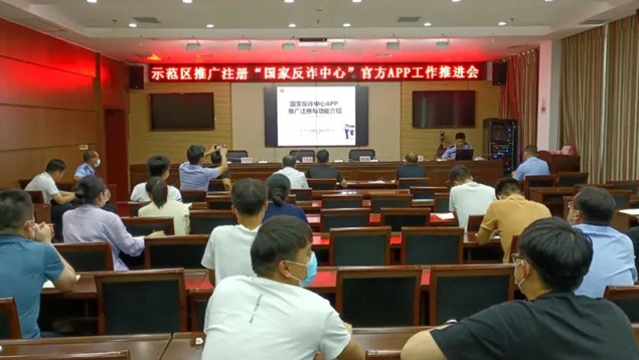 8月11日,示范区召开推广注册“国家反诈中心”官方APP工作推进会,安排全区反电诈工作,现场演示并部署推广注册“国家反诈中心”官方APP工作任务。区二级调研员丁有亮,示范区公安分局局长何学民出席会议。