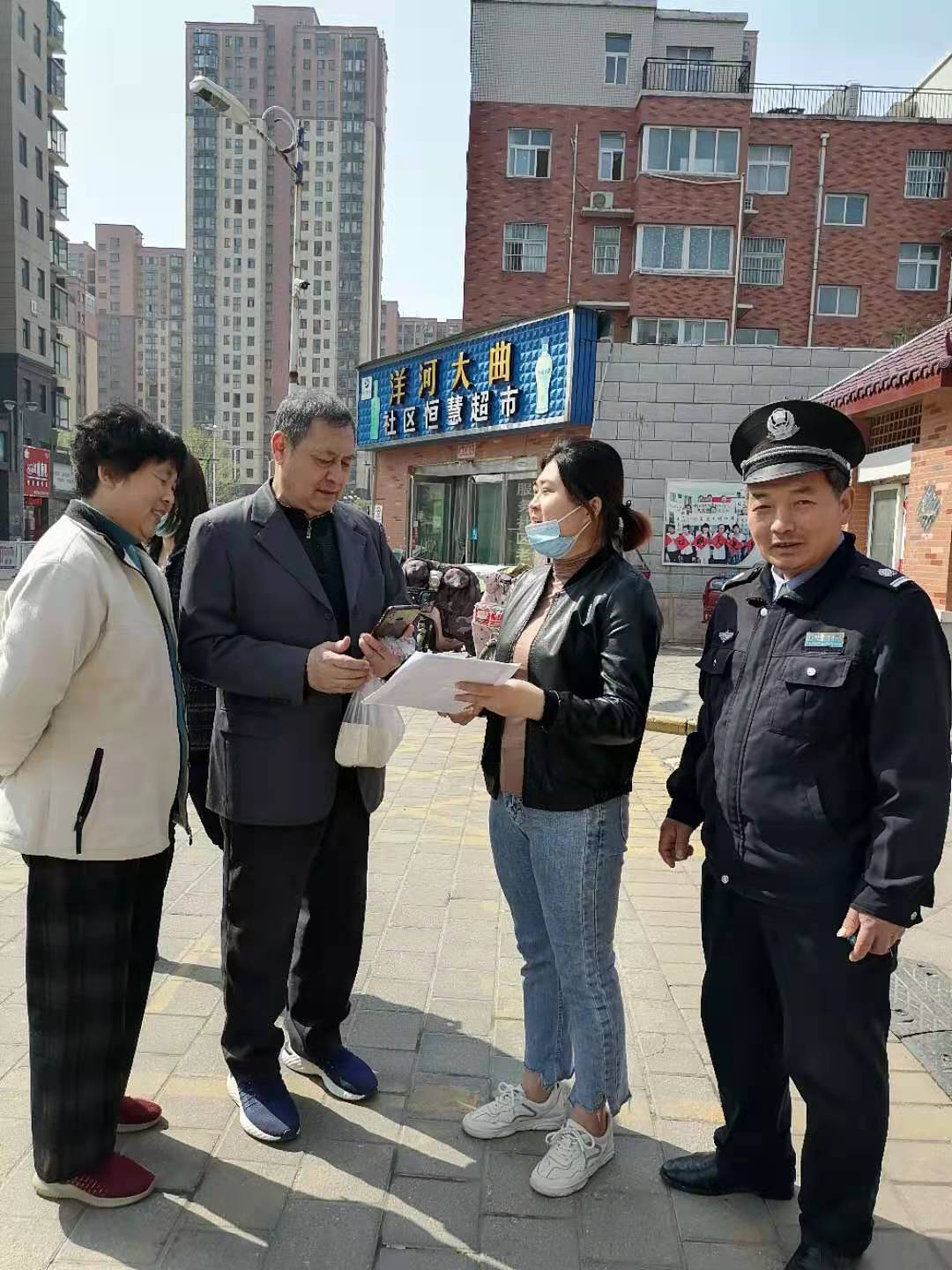 4月9日上午,人和街街道办事处联合人和街派出所在辖区金色东方信苑小区组织开展了反电诈现场培训和入户宣传活动。办事处副主任郭影、派出所所长王江涛现场为各社区干部、小区物业、党群议事会成员等进行了反电诈宣传讲解培训,明确细化了反电诈宣传工作方法步骤和工作要求。随后,各社区干部联合派出所民警、小区物业、党群议事会成员进社区、入楼院,挨家挨户开展反电信诈骗宣传和“金钟罩”注册推广,向居民群众面对面讲解电信诈骗的各种类型及真实案例,提醒大家在日常生活和工作中一定要提高警惕、加强防范,并积极动员大家注册防诈骗“金钟罩”APP,用大数据手段为本人及家人实施精准的反诈保护。
