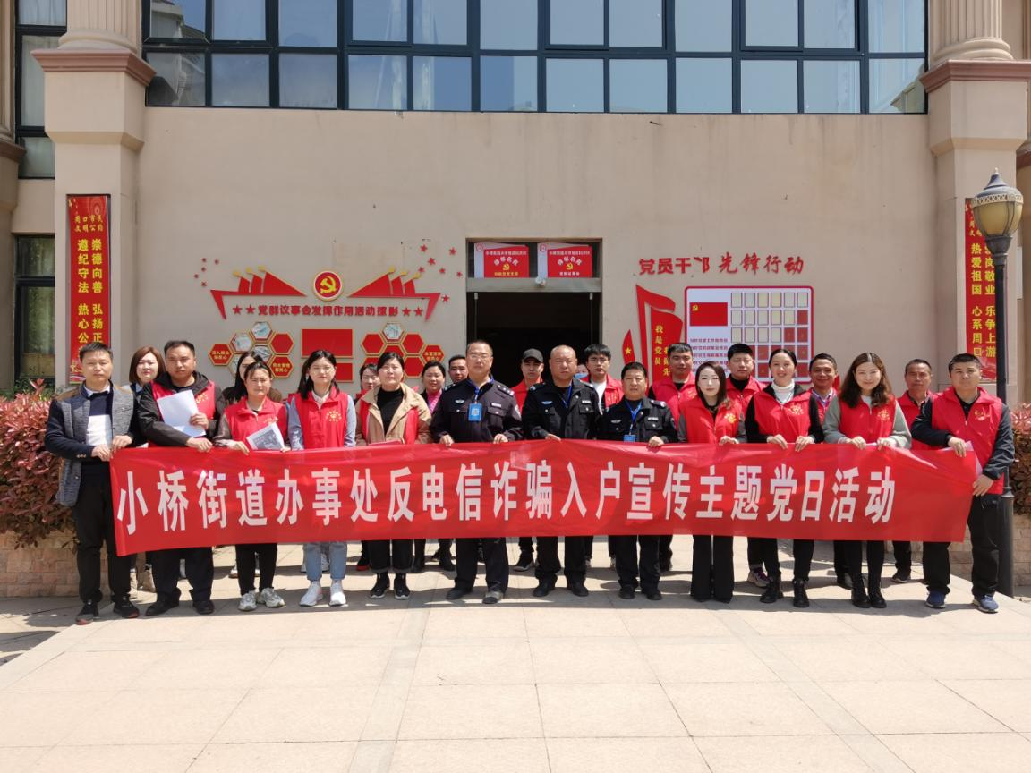 为从党的百年伟大奋斗历程中汲取继续前进的智慧和力量,巩固深化“不忘初心、牢记使命”主题教育成果,推动党史学习教育深入群众、深入基层、深入人心,切实为群众办实事、办好事、办身边事,让群众享受高质量生活,日前,川汇区小桥街道办事处各支部集中开展“我为群众办实事”党史学习教育主题党日活动,增强群众获得感、幸福感、安全感。 机关党支部组织党员干部进行“金钟罩”防诈骗政策宣传入户活动,把开展主题党日活动同解决群众实际问题结合起来,保护好群众的钱袋子,提醒群众做好防范,提高防诈骗意识。