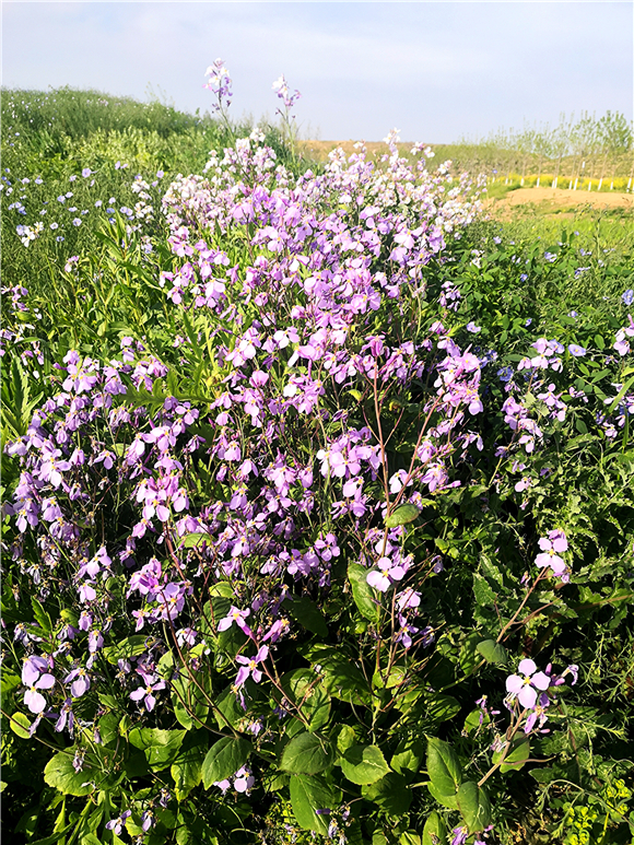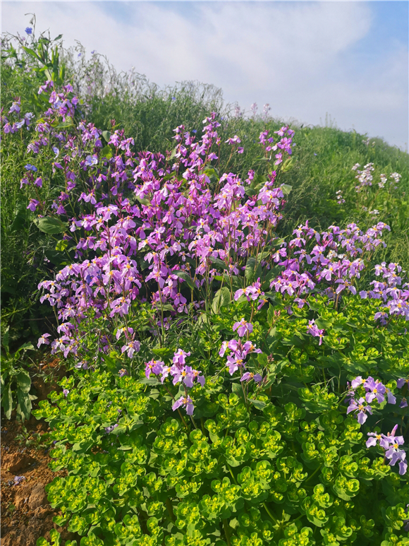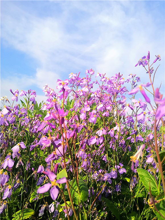 据了解,诸葛菜也叫二月兰,因早春农历二月前后开花,所以叫二月兰,花开温柔,娟秀,清雅,很是招人喜欢。而且具有较强的耐寒性与适应性,自繁能力比较强,一次播种能年年自成群落,能够有效控制裸地扬尘起沙、抑制杂草生长。诸葛菜花花期相当长,能够从早春时节,一直开到暮春初夏间,当百花盛开时,它依然露着笑脸。因此着实是春天里的“早到迟退”之花。③5