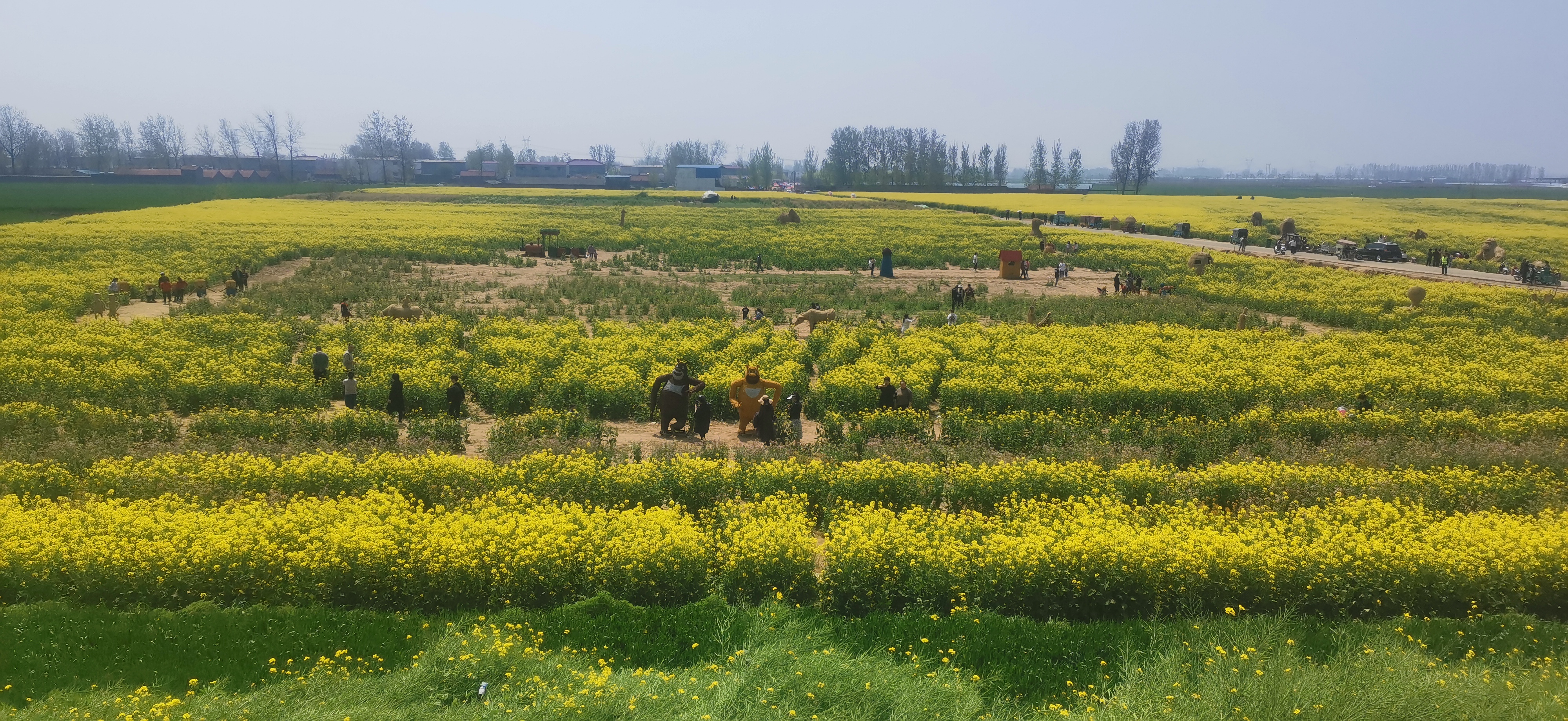 在明媚春光中,金灿灿的油菜花海含蕊吐翠,一望无边,令人心旷神怡。伴随着一阵滴滴声响起,名为“福泉号”的观光火小车载着30余名游客畅游花海,广袤的田野里一片流金溢彩,引来车上游客开心得把歌唱;在碧绿的沙河中,众多游客乘坐豪华游轮穿梭沙河两岸,切身体验 “船在水中行,人在花中走“独特情趣;在稻草人乐园,熊出没、小黄人、海绵宝宝等惟妙惟肖的稻草人矗立花海中,更是成为孩子们的乐园,吸引不少孩子游玩嬉戏。