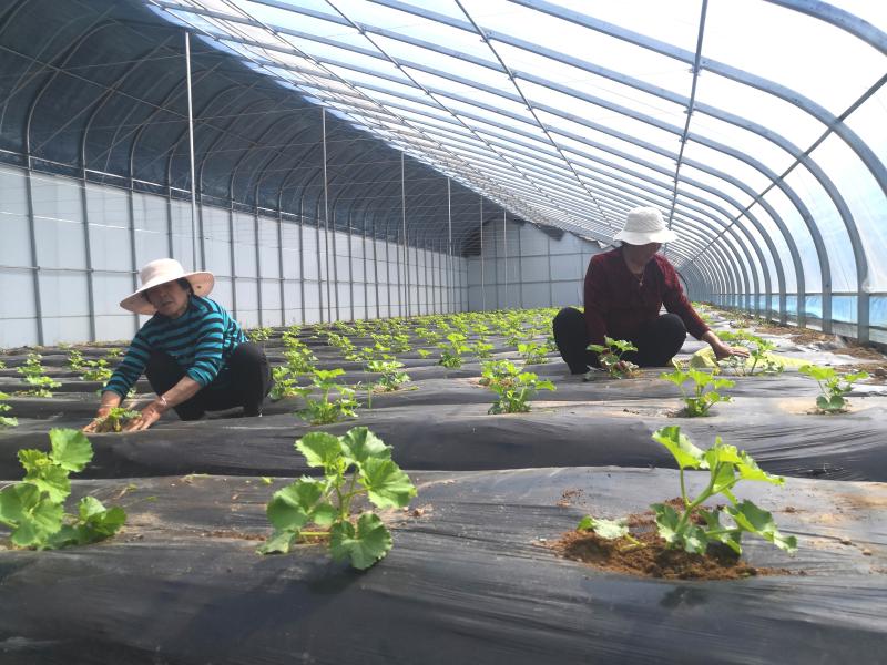 “当下,正逢‘吊秧’香瓜生长旺盛的时候,这几天,我和冯大姐一直在大棚里忙活,每天有事儿干、有人陪说话,还可以挣到60元的工钱,就在家门口,多好啊!”4月8日,在半截楼村新建的温室大棚内,65岁的李爱莲一边忙着为瓜秧打岔,一边对记者说。