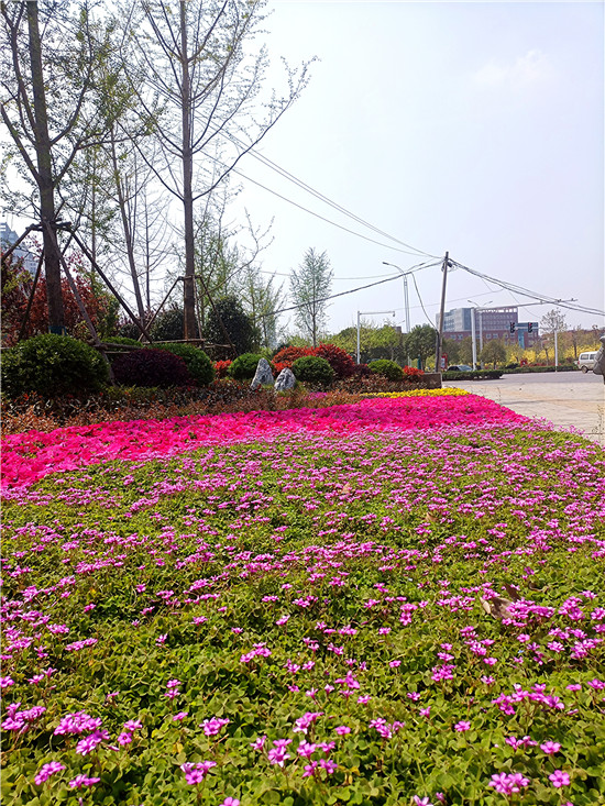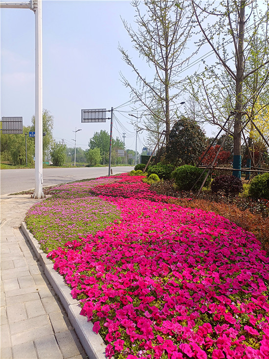 春时花事道不尽,千姿百态竞娇妍。近日,随着天气渐暖,我市各色花卉相继绽放,在周口大道与建设大道交叉口一处绿化带内,色彩缤纷的花卉编织成一条花的长廊,令人眼前一亮。