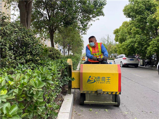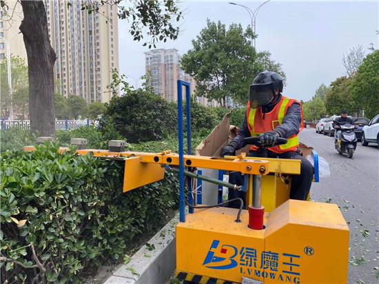 4月13日,周口大道上园林工人操作着特殊的园林作业车,修剪路边的绿化树,使用“电推子”,不仅提高了效率、节省了人力,就连“剃”出来的“平头”也更平了。“电推子”所到之处,绿化树被修剪得很齐整。②9
