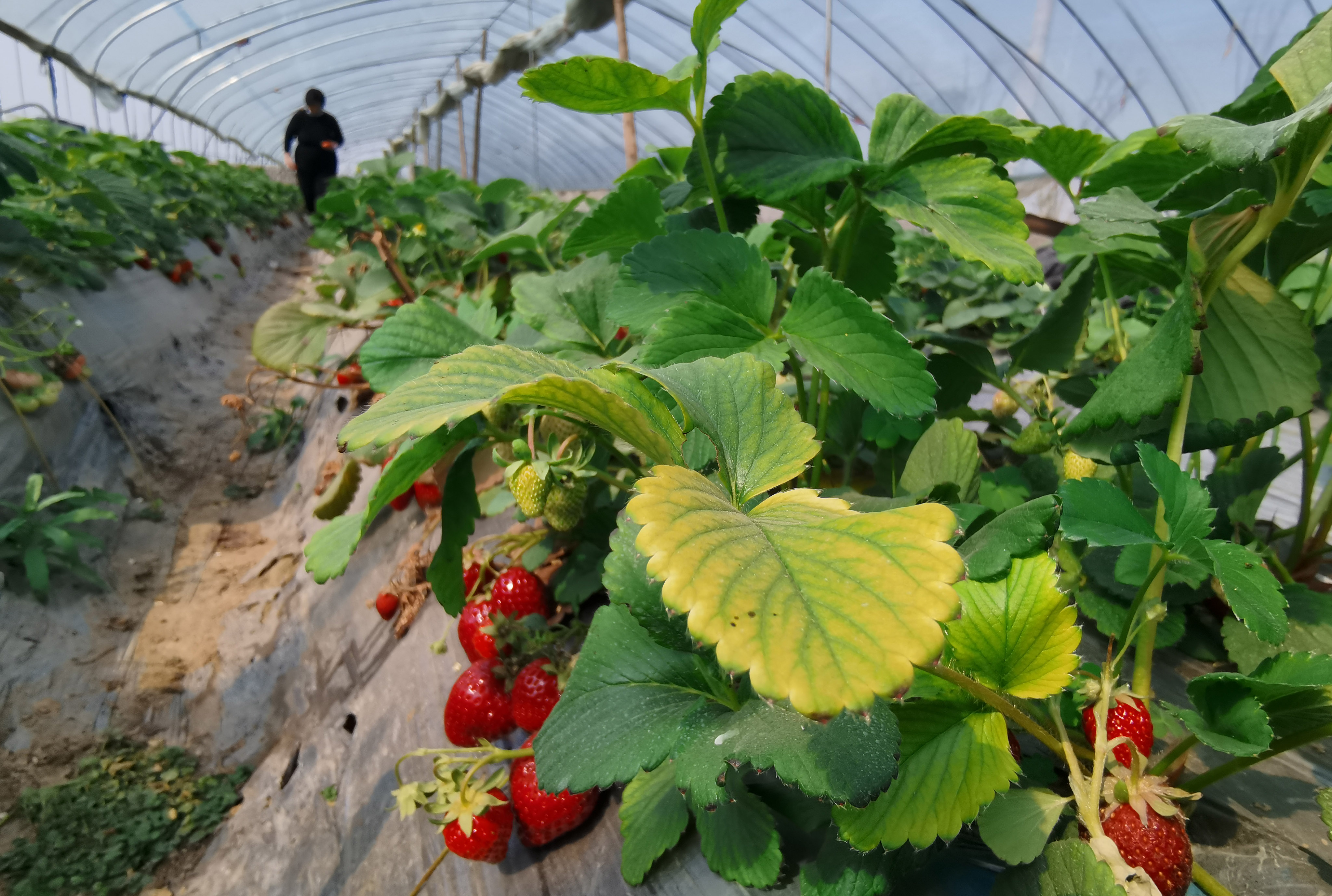 4月14日,商水县八一大道南段城关乡的草莓大棚和花卉大棚连成片。在草莓种植大棚内,红彤彤的草莓吸引了不少游客前来采摘。商水县城关乡不少农民结合所处地域优势,发展种植草莓、花卉等经济作物,吸引不少县城及周口市区的市民来此采摘,促农民增收。②9