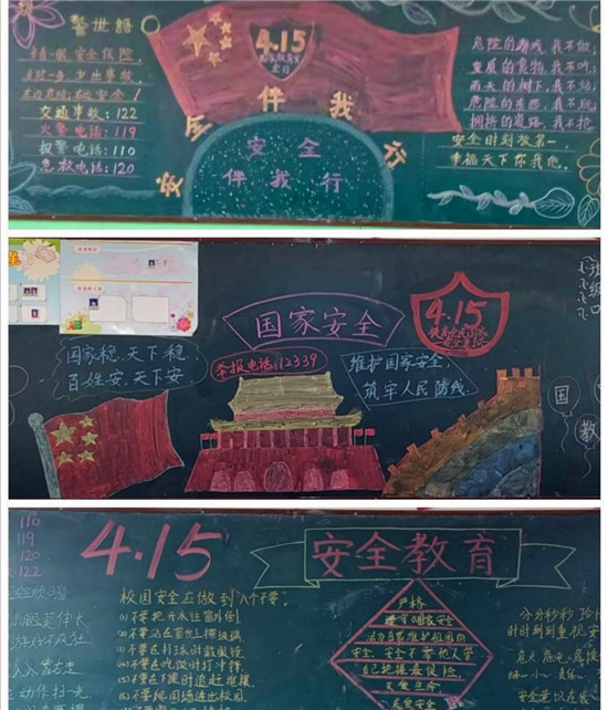 据不完全统计,4月15日,西华县教体系统组织参加国家安全教育日普法宣传活动师生达12万多人次,开展安全教育专题课堂1900余节次,观看国家安全宣传影片40场,宣讲国家安全知识300余场次,举行演讲、诵读比赛、知识竞赛100多场,举办师生安全演练42场,制作宣传版面22块、条幅200余条、手抄报300余份、黑板报100余块,进一步营造了国家安全教育氛围。②10
