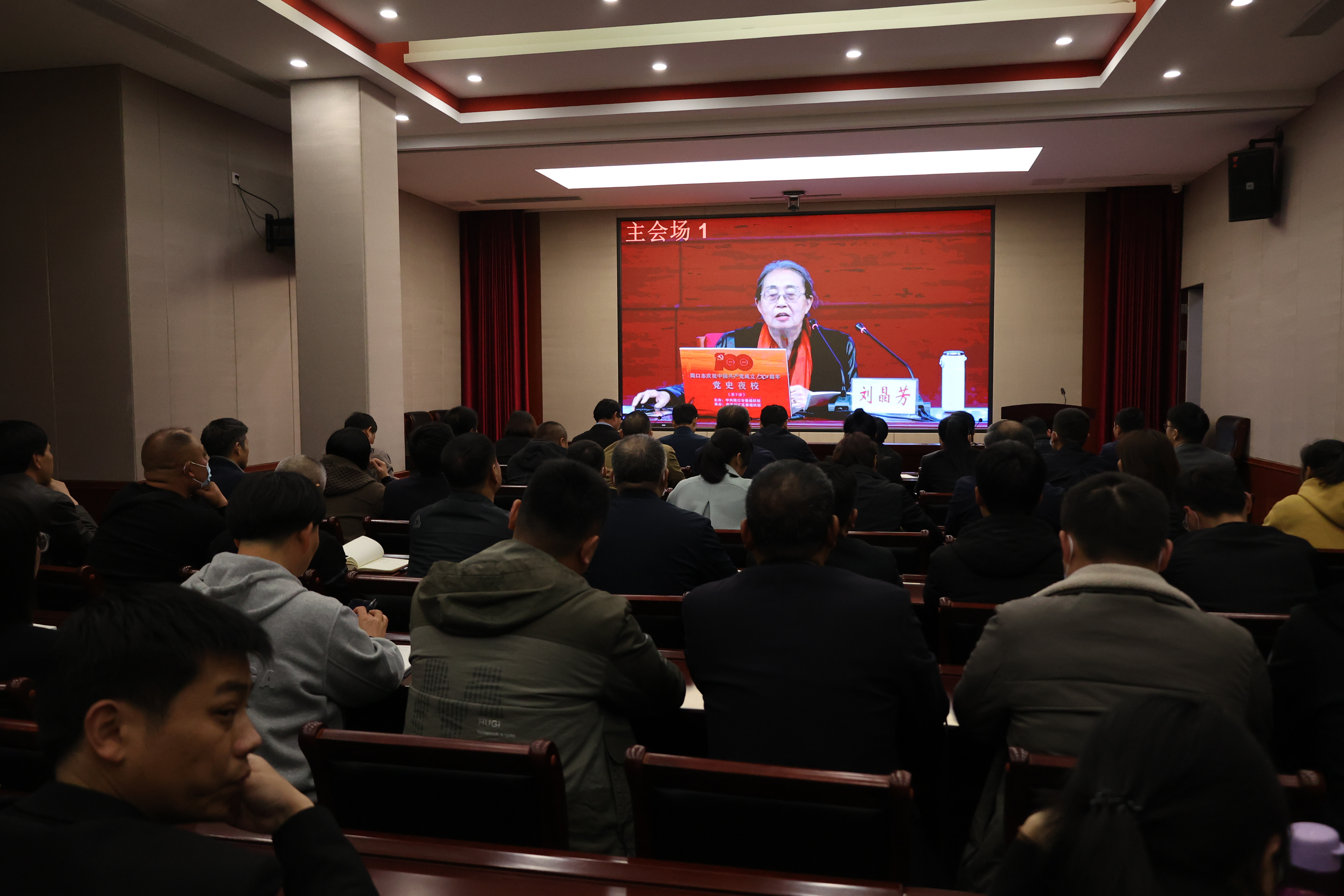 4月14日,西华县政法队伍教育整顿领导小组办公室,县委政法委,组织部分政法单位干警在县党员教育中心收听收看了周口市“党史夜校”第7期。