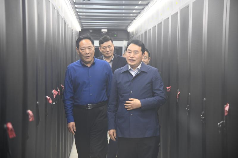 图为:开封日报报业集团一行在参观周口报业融媒体中心机房