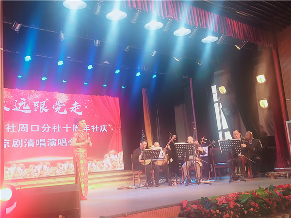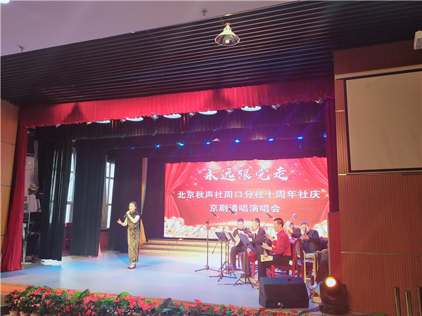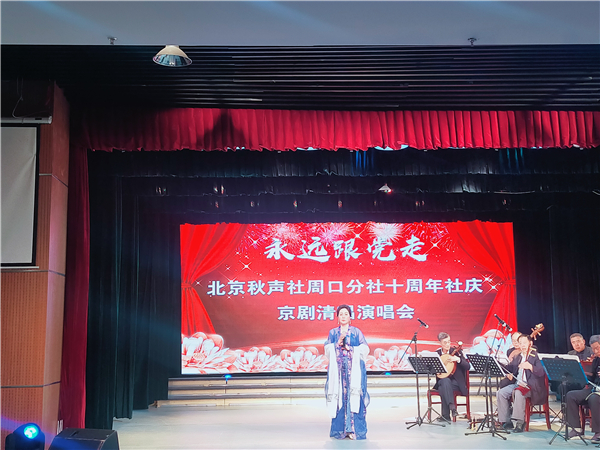 4月18日下午,市文化馆群星小剧场内弦歌悠扬、京腔嘹亮,40多名京剧爱好者汇聚在此,为庆祝北京秋声社周口分社成立十周年激情献声。