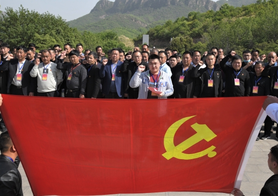 4月18日,商水县委组织部和县委党校组织200多名村级党支部书记集中到平顶山舞钢虎头山新四军烈士陵园接受红色革命教育,并参观学习当地农村人居环境整治工作。舞钢市在人居环境整治过程中不搞大拆大建,充分发动群众,因地制宜、因陋就简,特色发展,建设美好家园的做法让让广大村级党支部书记受益匪浅。大家纷纷表示要向英烈学习,克服困难,想方设法做好人居环境整治和乡村振兴工作。图为他们在烈士纪念碑前重温入党誓词。③7周口日报·周道客户端记者付永奇摄