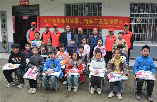 “经过我们公司老员工、村支部书记李金棋的牵线联系,俺一行6人今天一大早驱车近200公里到这里开展‘深学党史办好实事、情系工友温暖童心’活动。一方面是学党史办实事的需要,也是关爱农民工支持地方教育事业的需要......”中建七局下属公司在商丘市一个项目生产部的负责人黄彦光如是说。