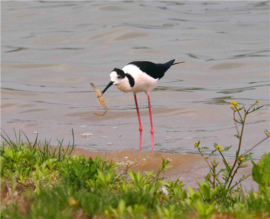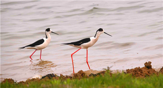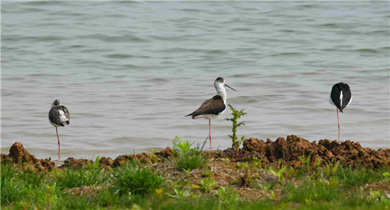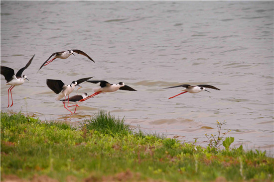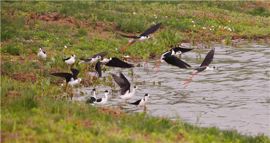 4月21日至27日是河南省“爱鸟周”。4月23日上午,成群的长腿鹬现身周口引黄调蓄水库,在湖边觅食嬉戏,成为春日一景。