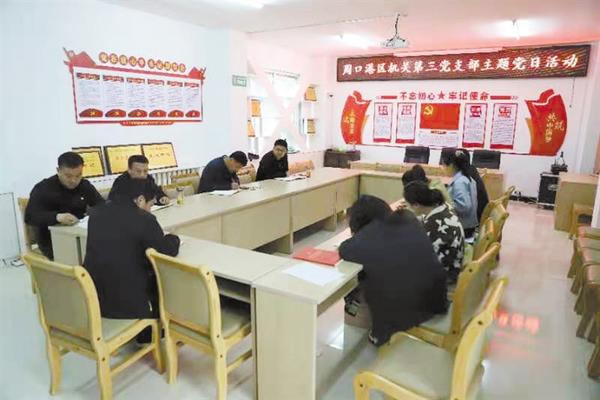 本报讯 (记者 宋风 文/图) 4月21日,周口港区机关第三党支部组织全体党员开展主题党日活动。港区党委委员、机关党委书记张东立到场指导。