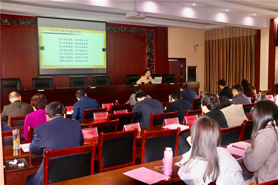 开展诚信专题讲座。为进一步弘扬诚信文化,教育引导教职工牢固树立诚信意识,4月25日,市委党校邀请中华文化教研室老师刘璐璐作“树文明新风、筑诚信河南”专题讲座,从诚信之义、诚信之美、失信之殇等方面讲述加强诚信建设的重要意义,引导大家牢固树立诚信服务意识。同时,结合党校实际,倡议全体教职工笃行科研诚信、学术诚信。