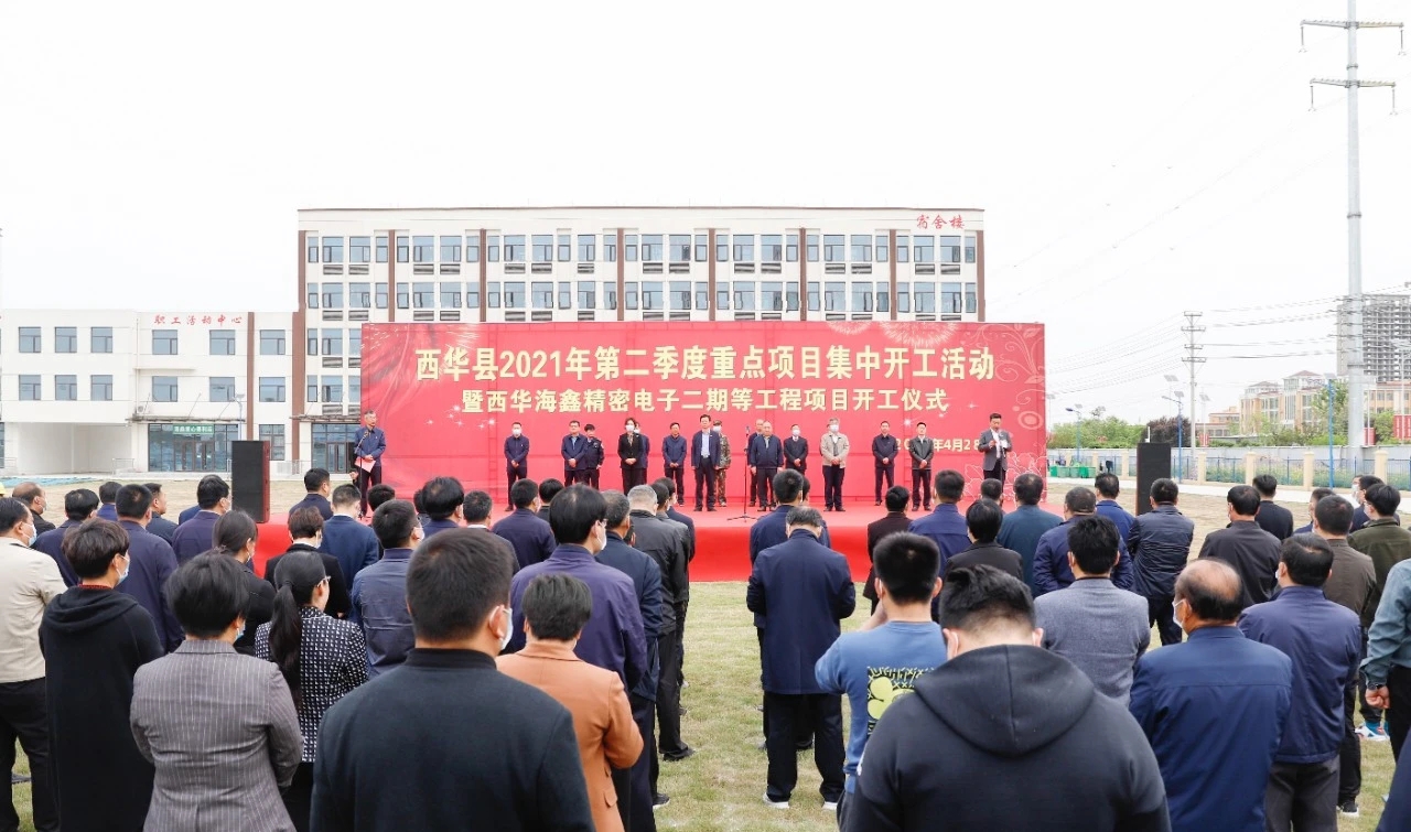 为巩固西华县经济持续向好态势,推动全县重点项目早开工快建设,按照全市统一部署,4月28日上午,西华县2021年第二季度重点项目集中开工暨西华海信精密电子二期等工程项目开工仪式在西华经开区举行。西华县委书记林鸿嘉下达开工令,县委副书记郭峰主持开工活动。县领导周晓燕、郭峰(县政协主席)、陈秉生、李海涛、张晓伟、刘贡献及海鑫精密工业有限公司董事长柳中义出席开工仪式。