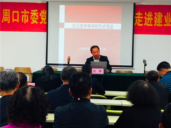 “有谁知道抗日战争真正是哪一年开始的?”在建业森林半岛庭院深处的社区党员学习教育“驿站”,一场红色党史讲座正在进行,市委党校党史宣讲骨干、讲师王伟向50余名建业社区党员干部、退休老党员、社区群众代表等讲授红色历史故事——《抗日战争精神的历史镜鉴》。王伟采用面对面交流、零距离互动方式,用基层党员群众听得懂的朴实语言,通过鲜活的历史事件,生动讲述了抗日战争时期的峥嵘历史,阐释了伟大的抗日战争精神的时代价值。参加学习的党员干部深受触动,他们认真听、细心记,并不时提问、交流。现场气氛热烈,掌声不断。