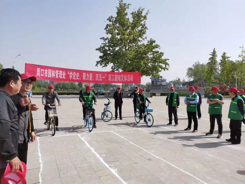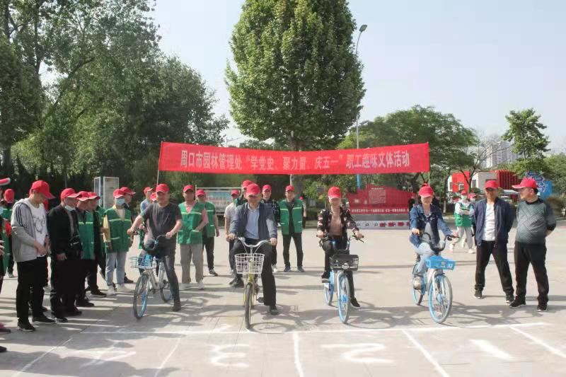 为庆祝“五一”国际劳动节,喜迎“五四”青年节,4月30日上午,周口市城市管理局园林管理处在周口公园开展“学党史、聚力量、庆五一”职工趣味文体活动,吸引70余名党员干部职工参加。