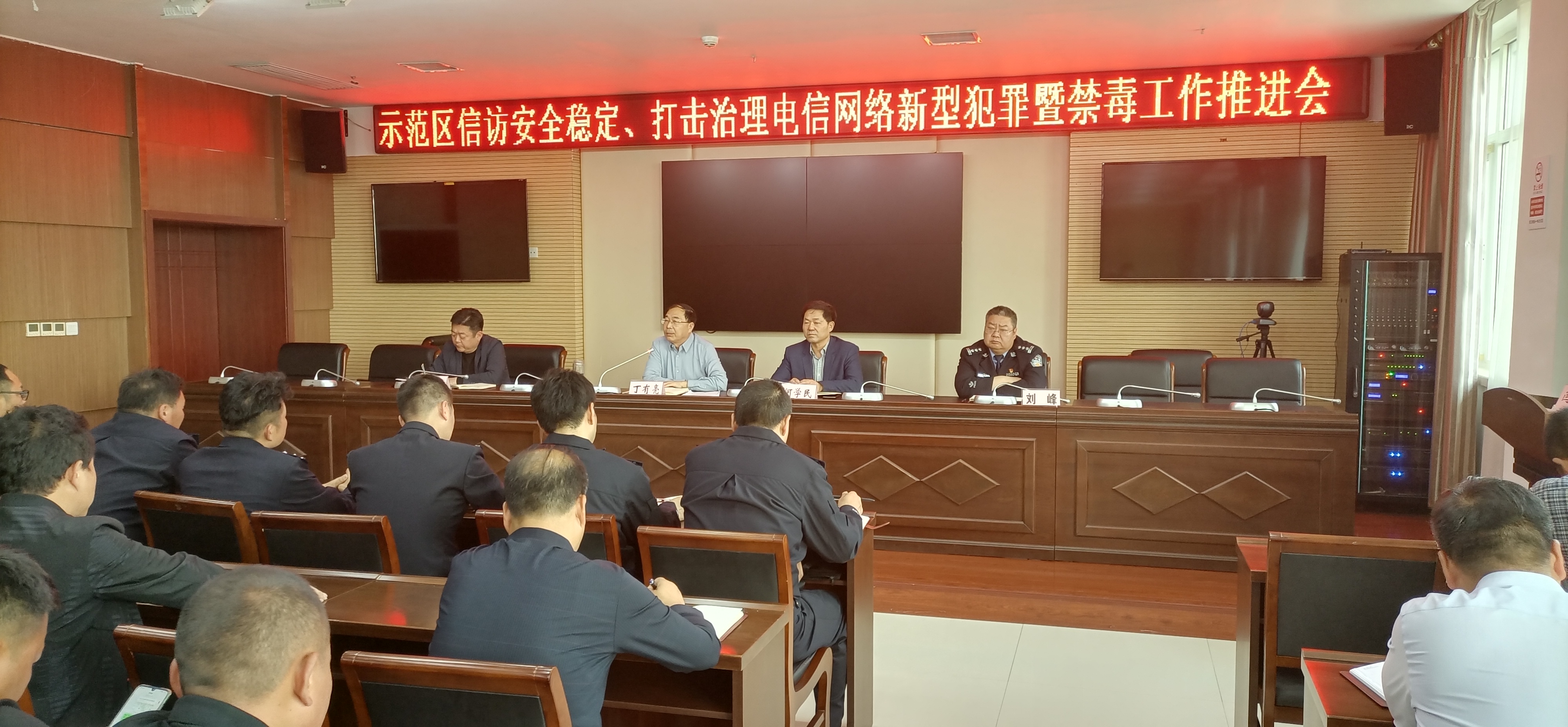 4月30日,市城乡一体化示范区召开信访安全稳定、打击治理电信网络新型犯罪暨禁毒工作推进会。示范区二级调研员丁有亮、周口市公安局示范区分局局长何学民出席会议。各乡办、区直各单位、村(社区)主要负责同志参加会议。