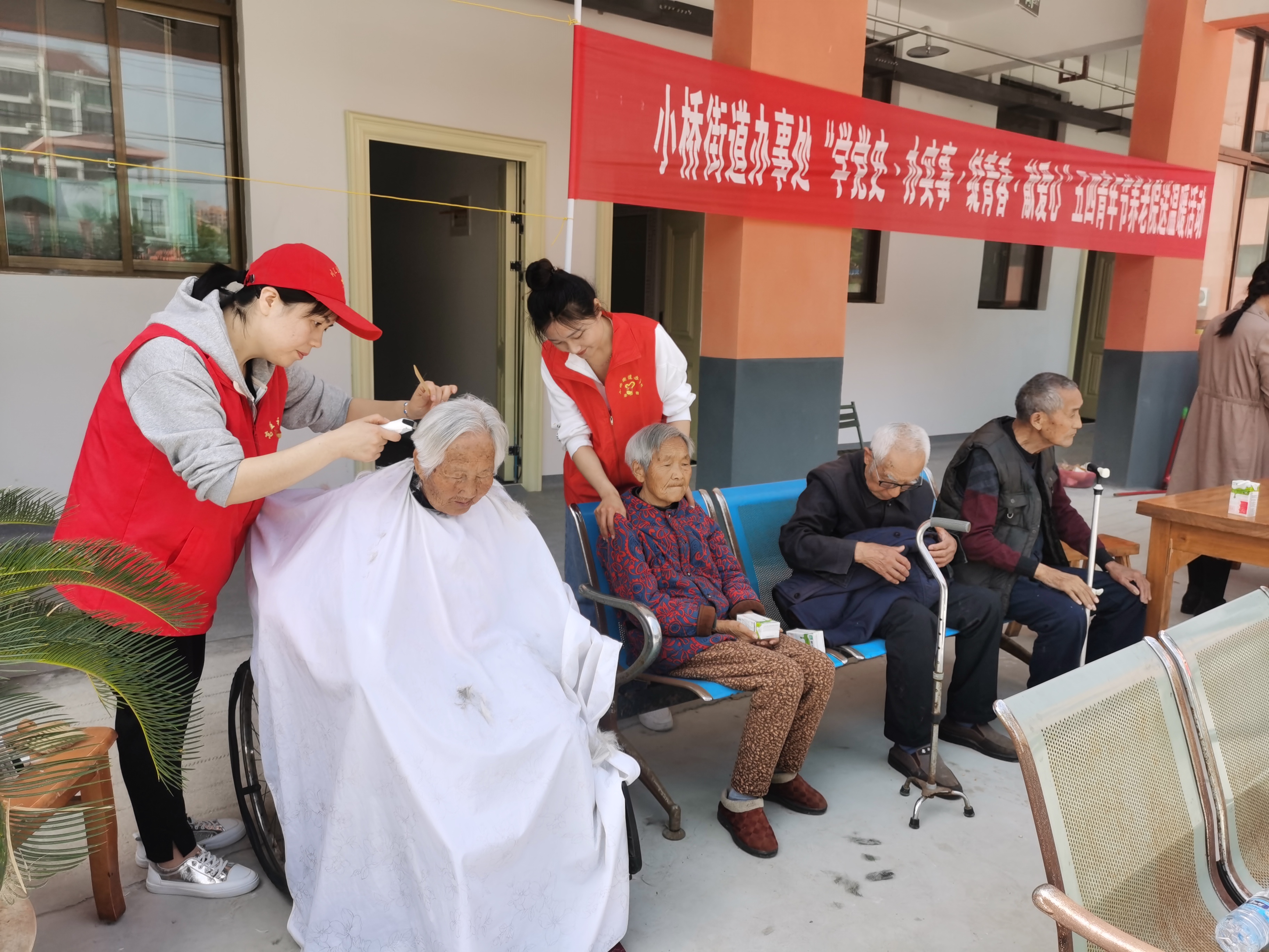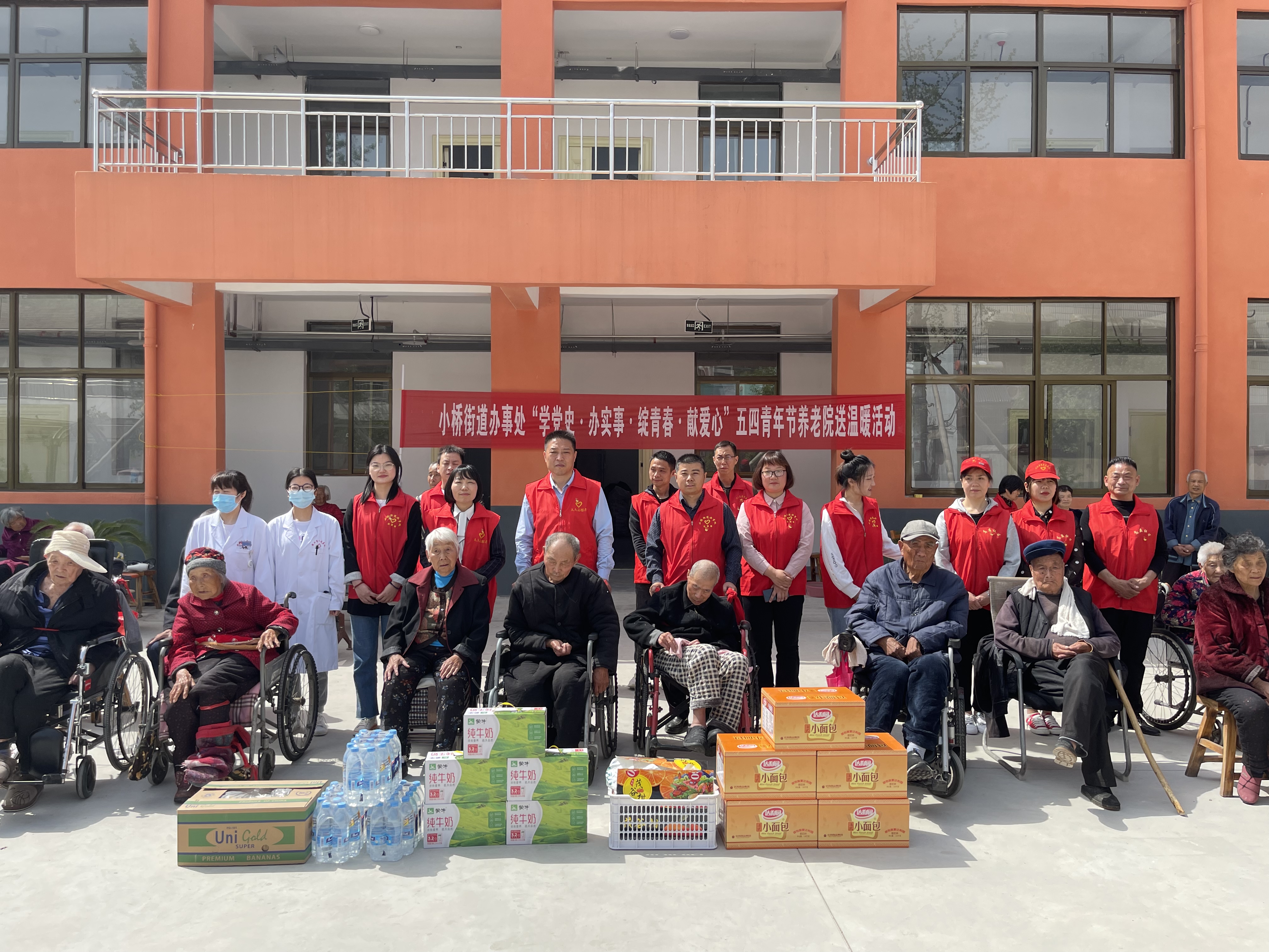 为进一步推动党史学习教育和“我为群众办实事”活动走向深入,发扬敬老爱老精神,强化青年使命担当,在“五四”青年节到来之际,4月30日上午,川汇区小桥街道办事处党工委、团委组织机关和社区青年志愿者到馨园养老院开展“学党史·办实事·绽青春·献爱心”“五四”青年节养老院送温暖活动。办事处党工委书记侯明亮、主任王静、副书记王海峰等到场参加。活动开始,办事处党工委书记侯明亮带领志愿者向在场老人送去了水果、牛奶、面包等慰问品。对双手不灵活的老人,大家把食物悉心喂给老人,并与他们聊天谈心,倾听烦恼。随后,青年志愿者们结合各自特长,不遗余力地为老人提供温暖服务。社区青年志愿者李楠楠依靠自身理发特长,自带工具为在场老人进行爱心理发,使老人“容光焕发”。有的志愿者为老人修剪指甲、按摩聊天等,为老人带来青年温暖。有的拎起扫把、拖把等工具打扫卫生,为老人们打造舒适干净的生活环境。同时,该办事处还邀请了周口市人民医院医生为院内老人免费量血压、叮嘱饮食习惯等,不断增强老年人的健康意识,活动在老人们的欢笑声中圆满结束。