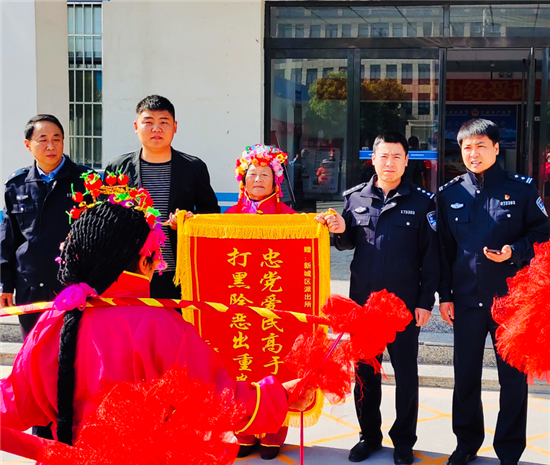 “忠党爱民高于天,扫黑除恶出重拳。感谢你们神速破案,你们真是群众的保护神。”5月1日,郸城县新城街道办事处一电动车失主来到新城派出所,送来锦旗,感激地说。