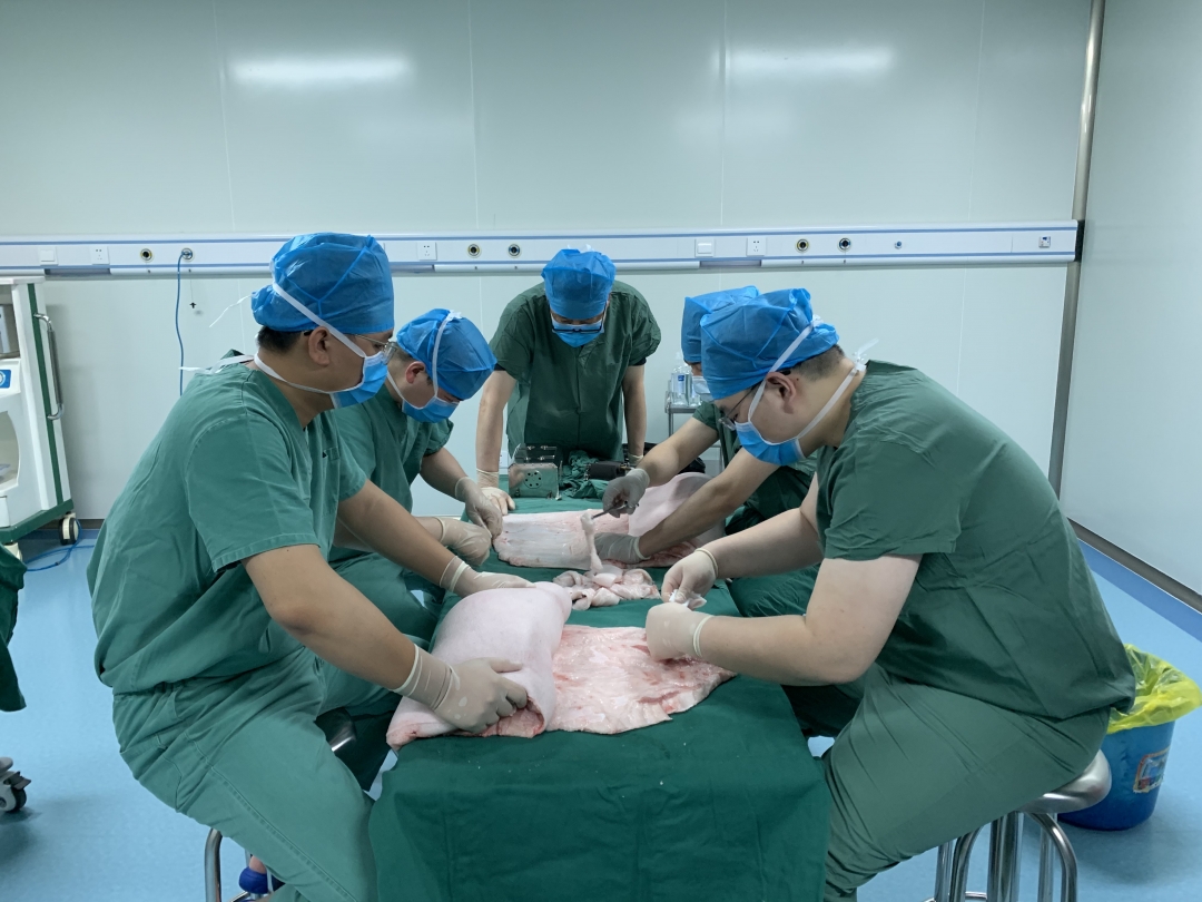 5月6日上午,是仵某入院的第四天,周口港区医院对他首次进行双下肢切痂大张异种皮覆盖+自体微粒皮移植术,此次手术切痂面积35%,切取头部及下腹部约2%自体皮剪制成微粒移植。周口港区医院烧伤整形科主任靳雪义对记者说,采用异种(猪)皮的好处是费用低,一头猪采皮费用仅2000元左右,是同等面积的异体皮或人工皮治疗方法费用的百分之一,并且活性高,能够对创面进行有效保护,而在患者自身新的皮肤组织长出后,异种(猪)皮就会自行脱落,这样利于后期的治疗,可以大大降低患者费用方面的负担。