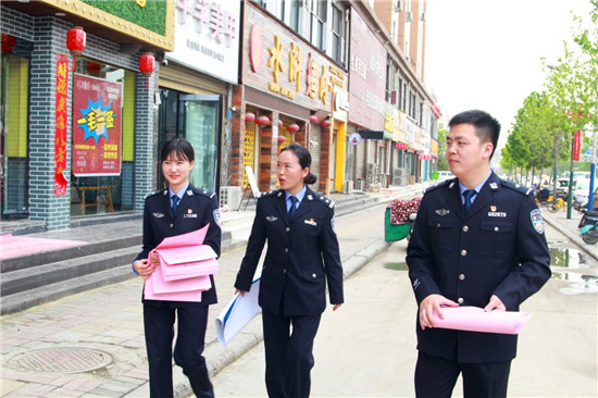 连日来,郸城县公安局反诈宣传如火如荼,民警王冰等奔走在各社区、商场、广场、公园、街道、沿街商铺,广泛宣传反诈常识,推广注册金钟罩,散发宣传页,张贴宣传通告,守护好群众的“钱袋子”。