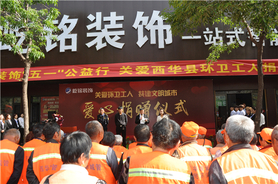“五一”前夕,河南屹铭装饰工程有限公司举行了“五一”公益行·关爱环卫工人捐赠仪式,向环卫工人捐赠服装、手套及矿泉水等物品。