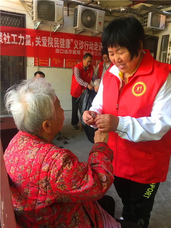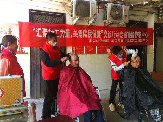 5月8日上午,周口市三川社工义工服务中心、周口远华医院组织志愿者、医务人员共同来到位于中心城区银珠路北段的银龄机构养老服务中心,为这里的老人提供理发、修剪指甲、医疗咨询等服务,受到了老人们的热烈欢迎。