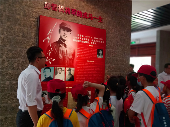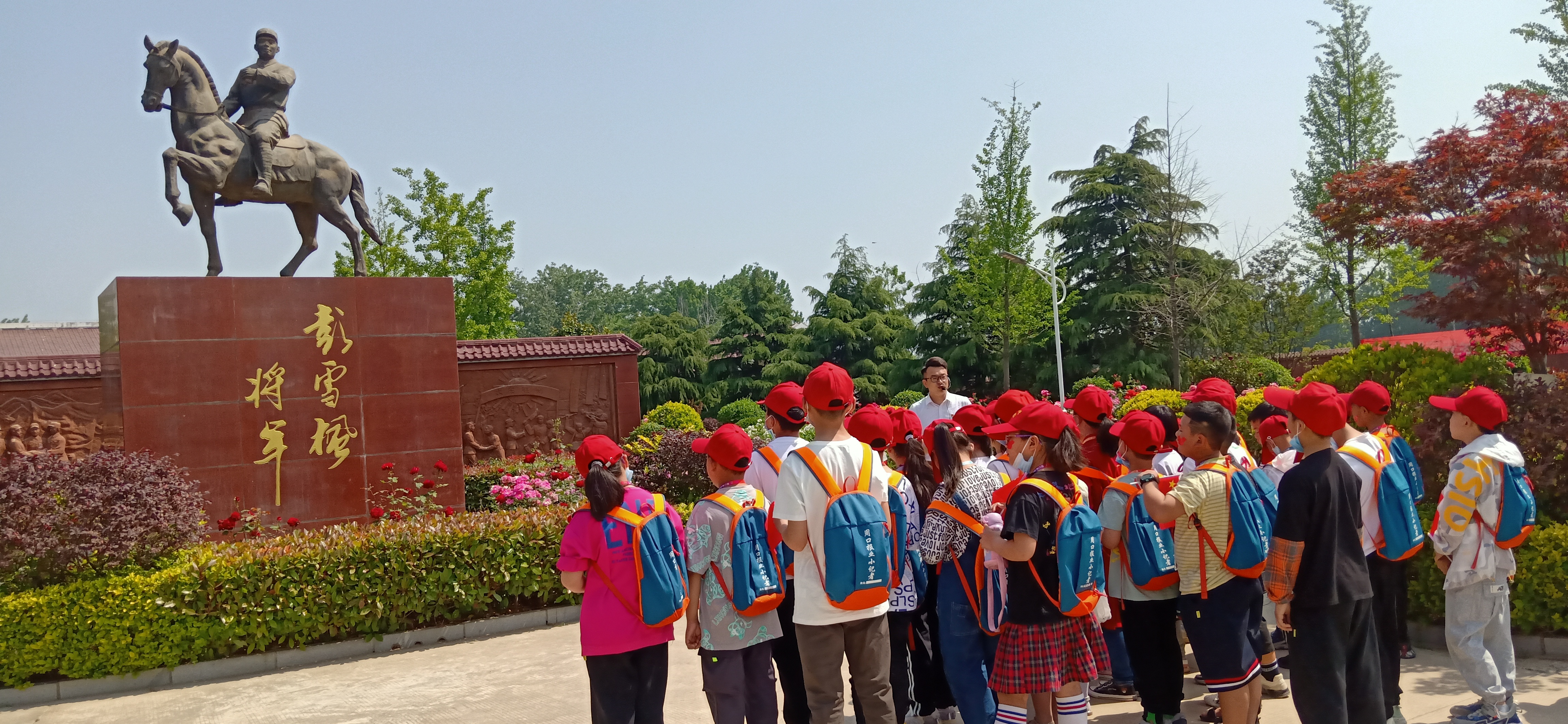 在短暂路途中,小记者们早已经按耐不住期待的心情,总感觉4公里的路程相当遥远。10多分钟行程后,车辆到达目的地。此时,杜岗会师纪念馆看上去庄严宁静,彭雪枫将军跃马驰骋的塑像高大威武,举目可见,一种仰慕之情顿时令人油然而生。