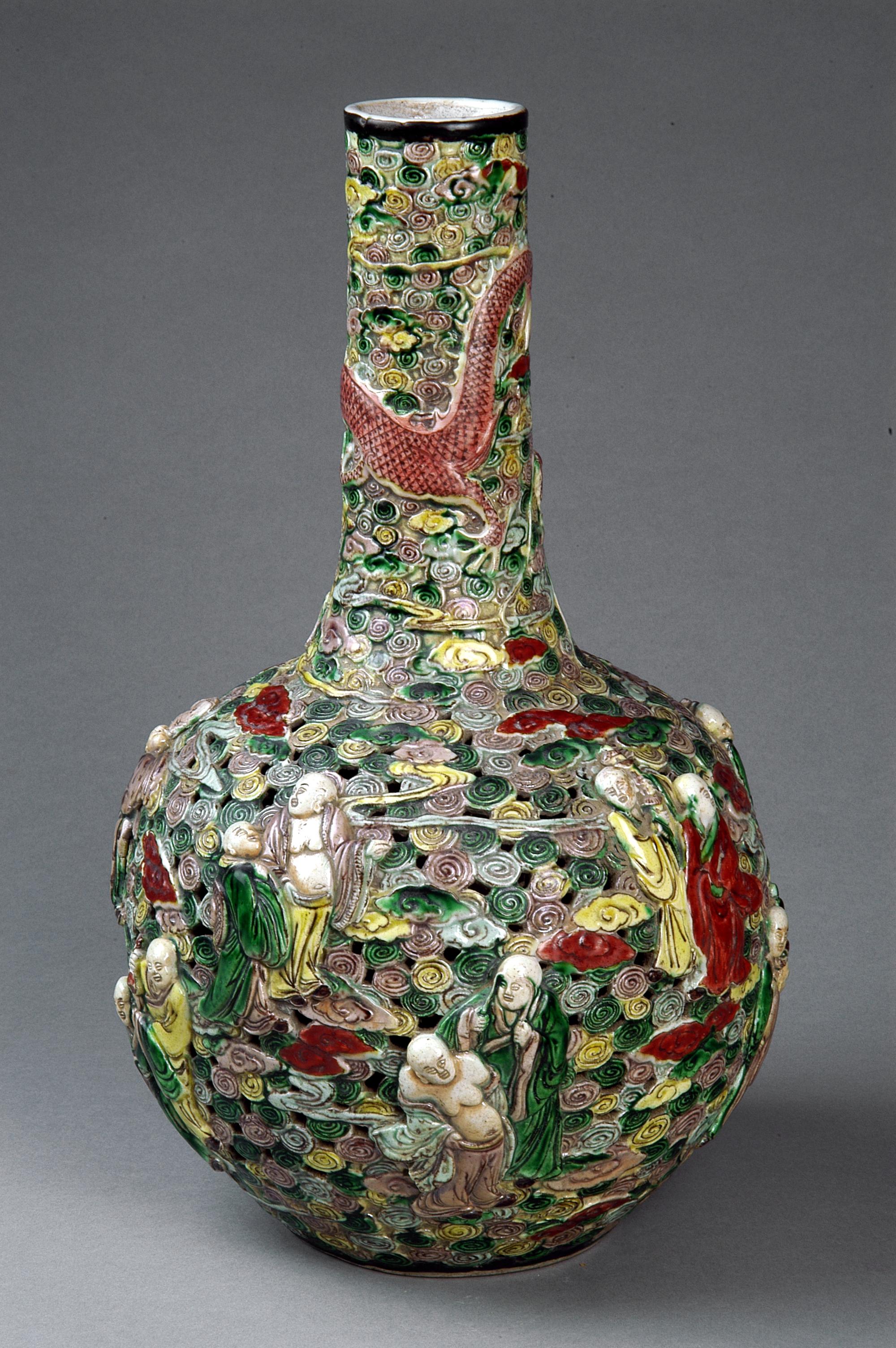 五彩透雕十八罗汉云龙瓶