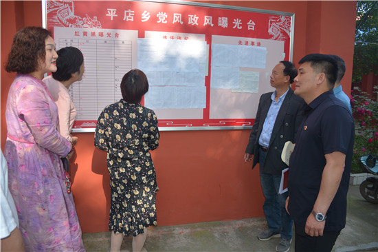 该乡加强对全乡党员干部执行中央八项规定精神情况、工作日值班、午间饮酒、惠农项目、惠农资金落实、干部作风等方面的明察暗访,一方面对违规违纪进行严管打击,一方面对先进典型大力表扬,弘扬了正气,鼓舞了士气,乡村干部作风更加扎实务实。比如刘楼村支部书记吴明玉敢于担当,一身正气,被挂“红旗”一次,全乡公开表扬,并特聘为平店乡廉情监督员。