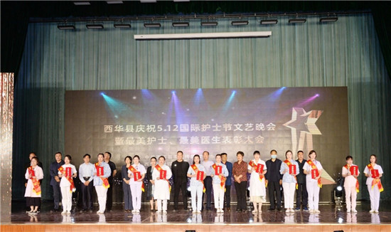在第110个国际护士节来临之际,5月10日晚,西华县在该县商务中心礼堂举行庆祝“5·12”国际护士节文艺晚会暨“最美护士”“最美医生”表彰大会,共庆天使节日,领略医护风采,表彰该县医疗卫生战线涌现出的先进模范,进一步营造尊重护士、理解护士、支持护士的良好氛围。县领导韩秀娟、王心坎、张翠霞、唐金华等观看了演出并为“最美护士”“最美医生”荣誉获得者颁奖。