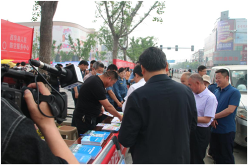 据了解,西华县本次宣传活动共悬挂防灾减灾主题横幅1200余条,出动宣传车30余辆,印制宣传册150余种,向群众发放宣传资料3万余份,现场接受群众咨询近2000人次。①5