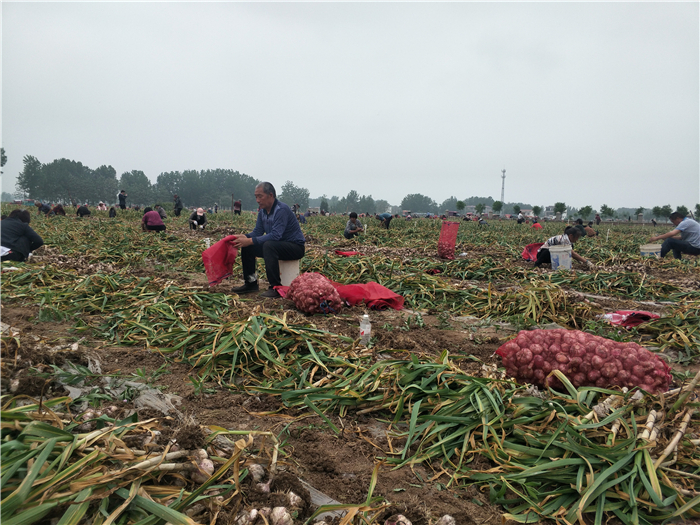 时下,正是大蒜收获季节,在太康县独塘乡刘庄无公害大蒜种植基地田间地头,蒜农们正忙着采收、装车、销售,到处都是蒜农收获大蒜的忙碌景象,优质大蒜喜获丰收让蒜农们个个笑逐颜开。