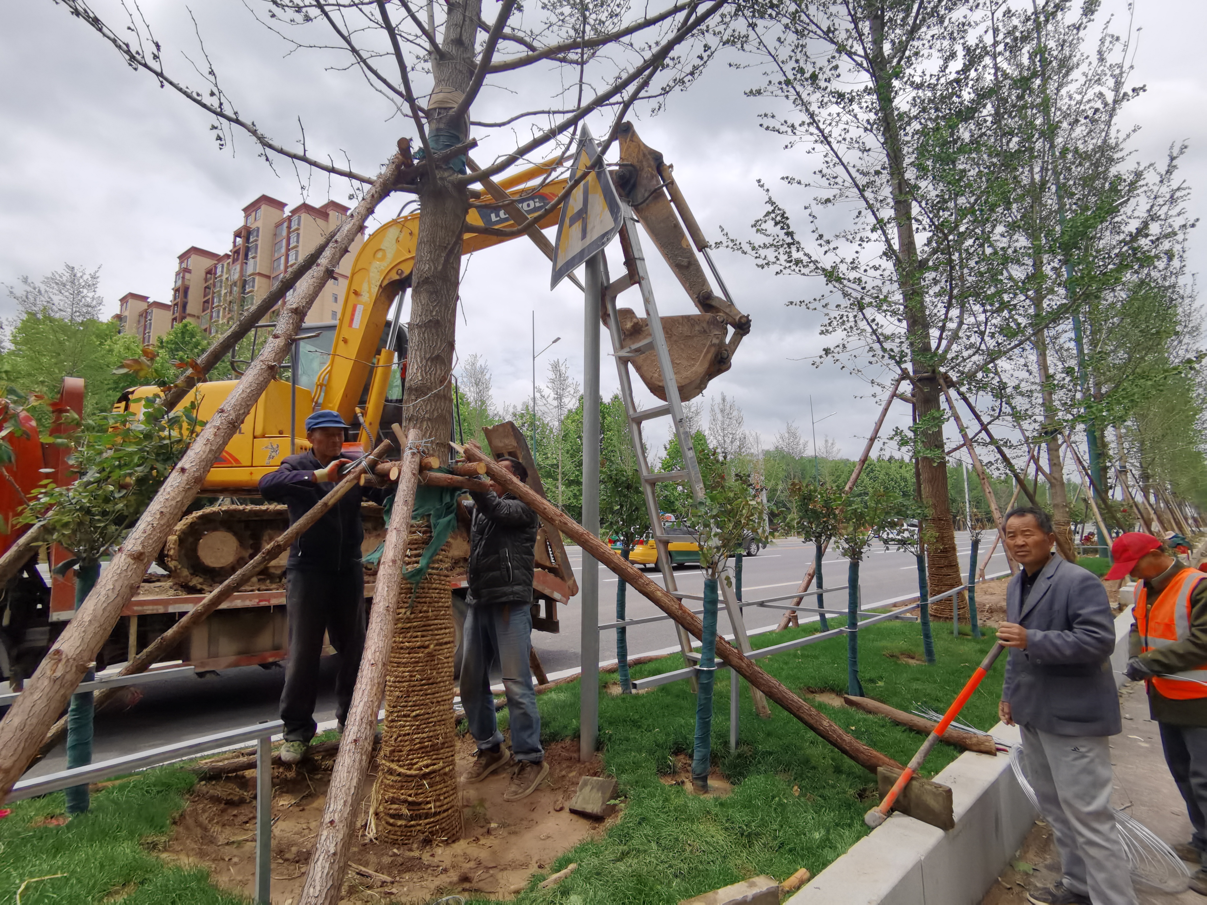5月16日,园林工人在周口大道北段补栽绿植。近两天,短时间的强降雨和大风等强对流天气使得周口中心城区不少树木遭了殃,倾斜、倒伏甚至折断现象频频发生。今日,园林工人忙着重新栽植绿植和对树木进行加固,以此增强树木对大风的抵抗力。②7